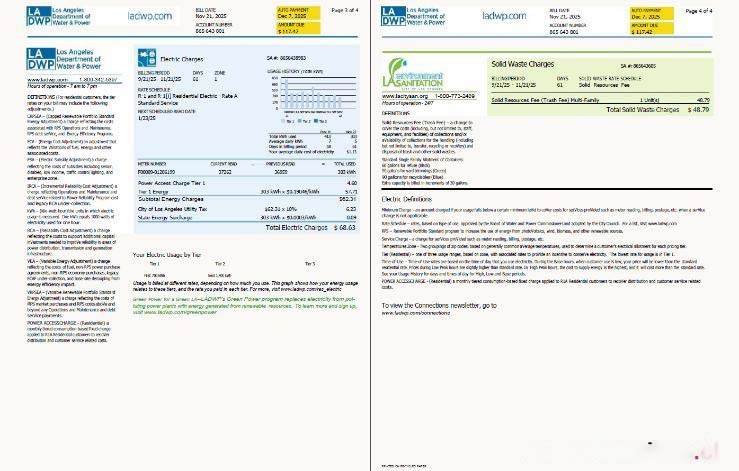 USA LA DWP utility bill template in Word and PDF formats, 4 pages, version 2, 3 4 pages download template file