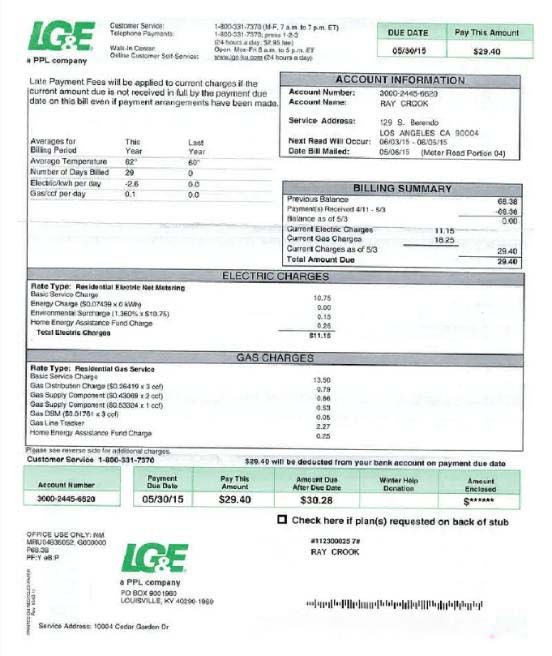 USA LG&E utility bill Word and PDF template download template file