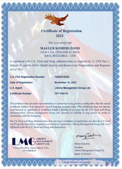 USA LMG certificate of registration, Word and PDF template, version 2 download template file