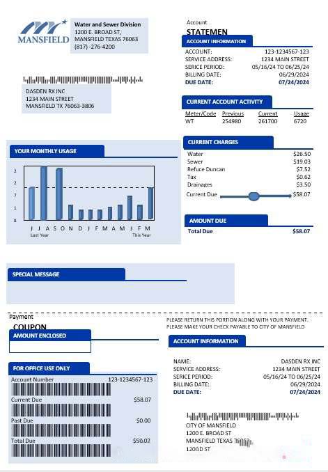 USA Mansfield Texas business utility bill template in Word and PDF formats download template file