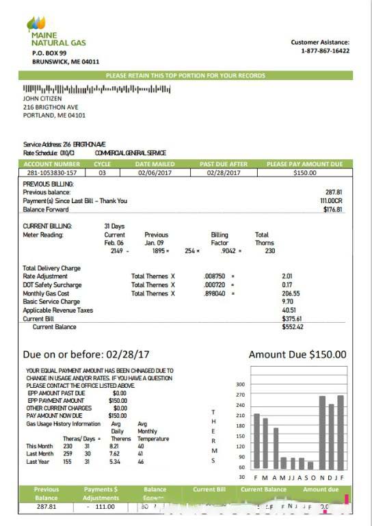 USA Marine Maine Natural Gas Portland utility bill template in Word format download template file