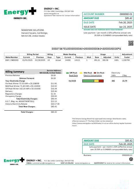 USA Massachusetts Energy Plus electricity business utility bill template in Word and PDF formats download template file