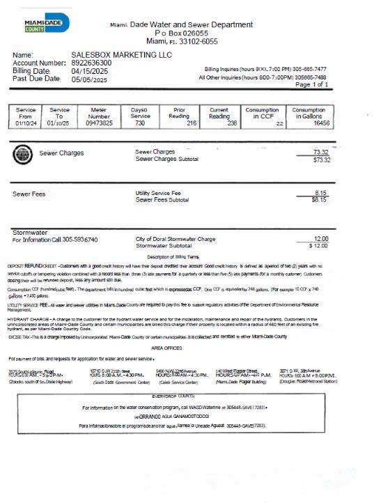 USA Miami Dade utility bill template in Word and PDF formats download template file