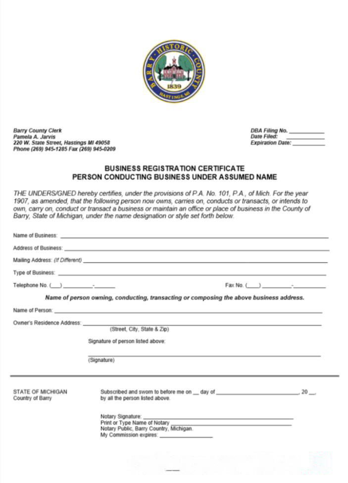 USA Michigan certificate of business registration download template file