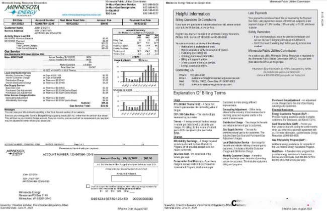 USA Minnesota Energy utility bill, Word and PDF template, 2 pages download template file