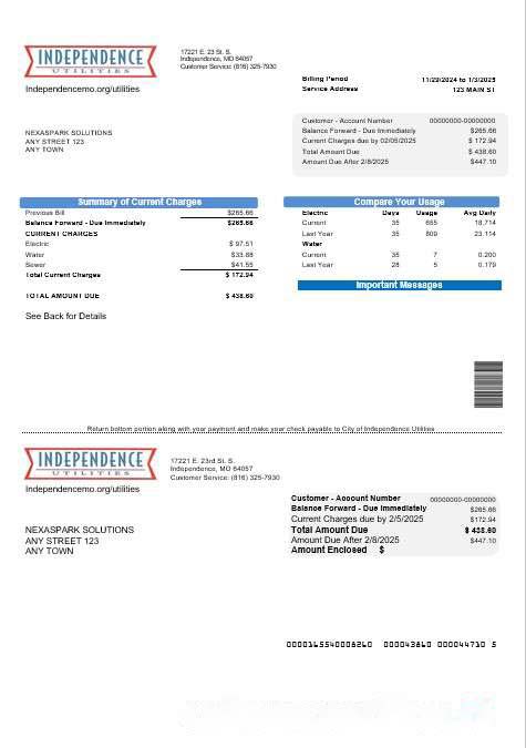 USA Missouri Independence Utilities business utility bill template in Word and PDF formats download template file