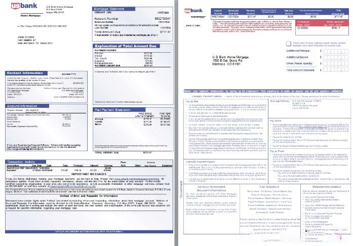 USA Missouri U.S. Bank Home mortgage statement, 3 pages scr download template file