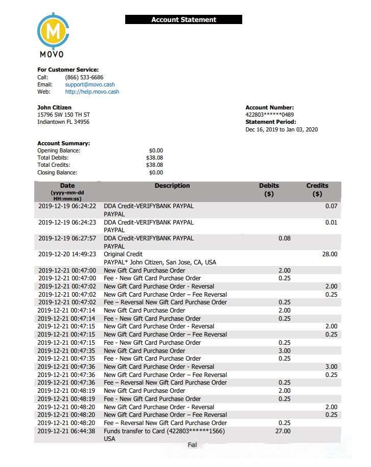 USA MOVO bank statement download template file