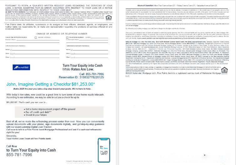 USA Nebraska Five Points Bank mortgage loan statement in Word and PDF formats , 4 pages 3 4 download template file