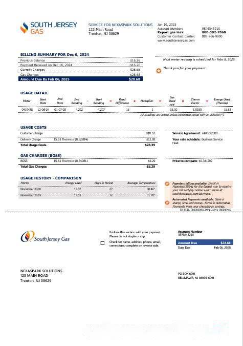 USA New Jersey gas business utility bill template in Word and PDF formats download template file