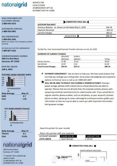 USA New York National Grid utility bill template in Word and PDF format download template file