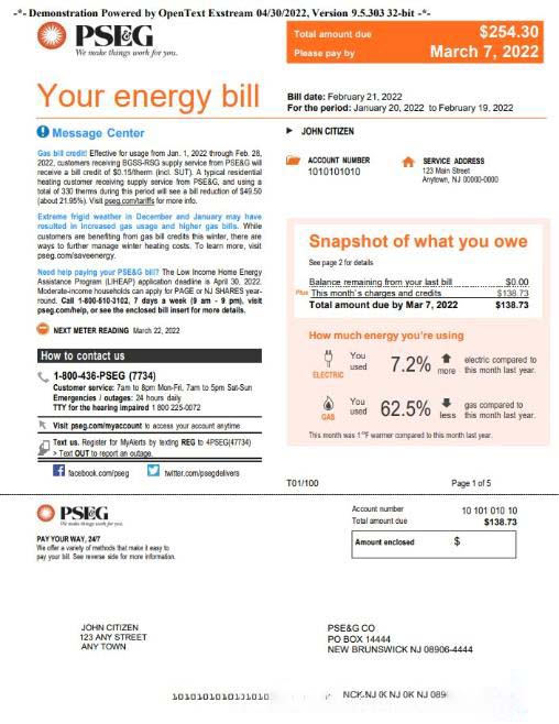 USA New York PSEG utility bill, Word and PDF template, 5 pages 1 download template file
