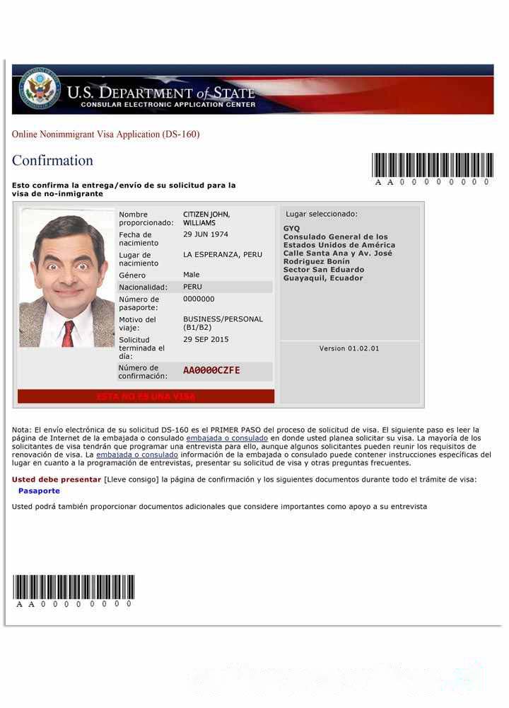 USA nonimmigrant visa application (DS 160) download template file