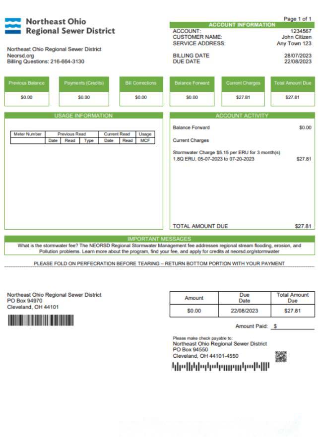 USA Northeast Ohio Regional Sewer District utility bill Word and PDF template download template file