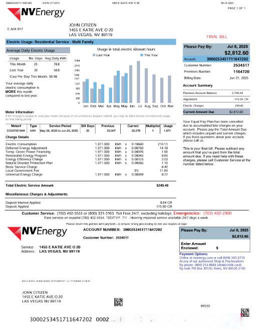 USA NV Energy utility bill template in Word and PDF formats, version 2 download template file