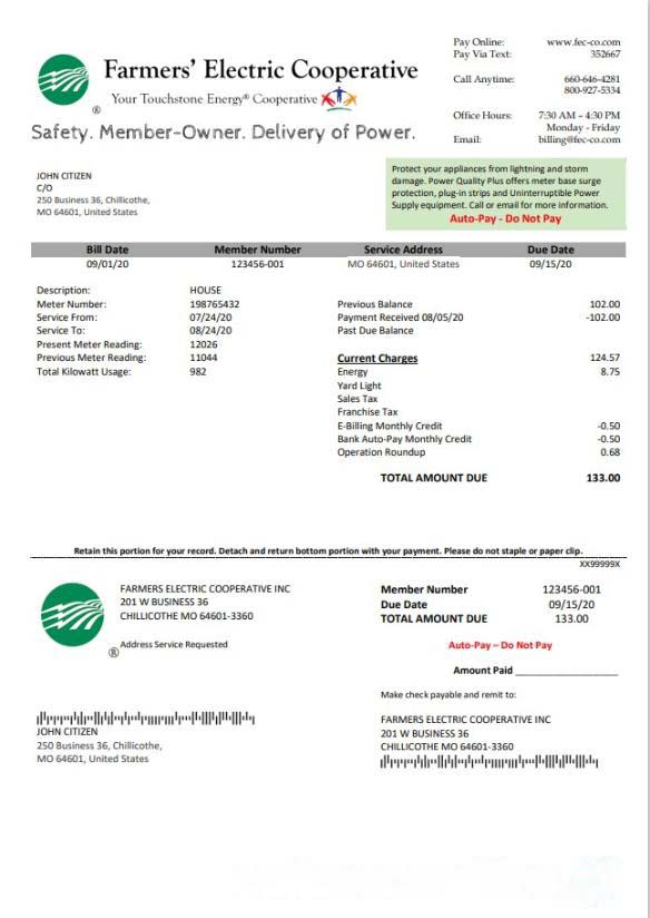 USA Ohio Farmer??s Electric Cooperative utility bill template in Word an PDF format download template file