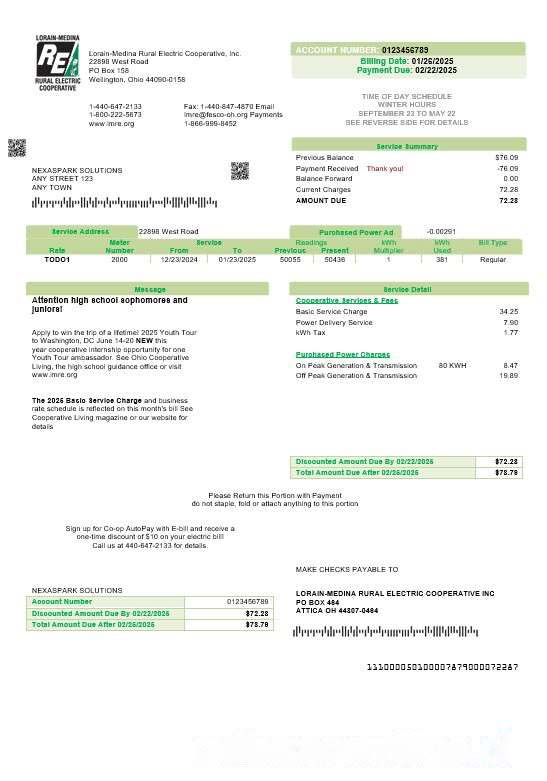 USA Ohio Lorain Medina Rural Electric business utility bill template in Word and PDF formats download template file