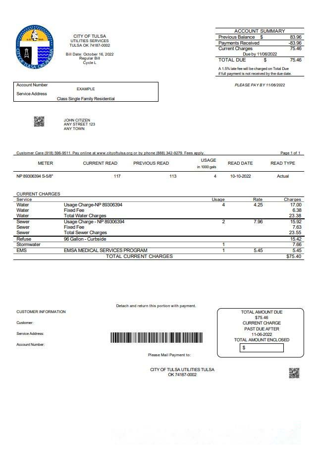 USA Oklahoma City of Tulsa utility bill template in Word and PDF format download template file