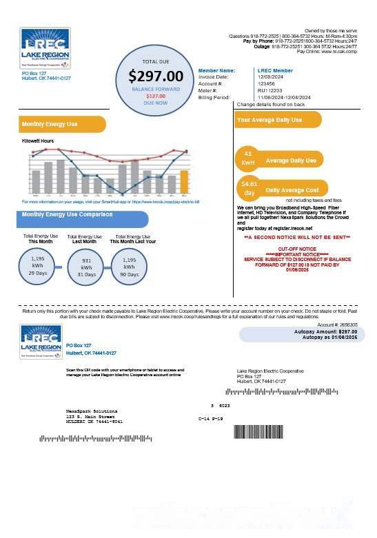USA Oklahoma LREC Lake Region business utility bill template in Word and PDF formats download template file