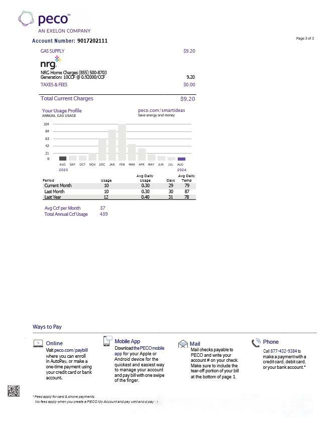 USA Pennsylvania PECO electric and gas utility bill, 3 pages 2 download template file