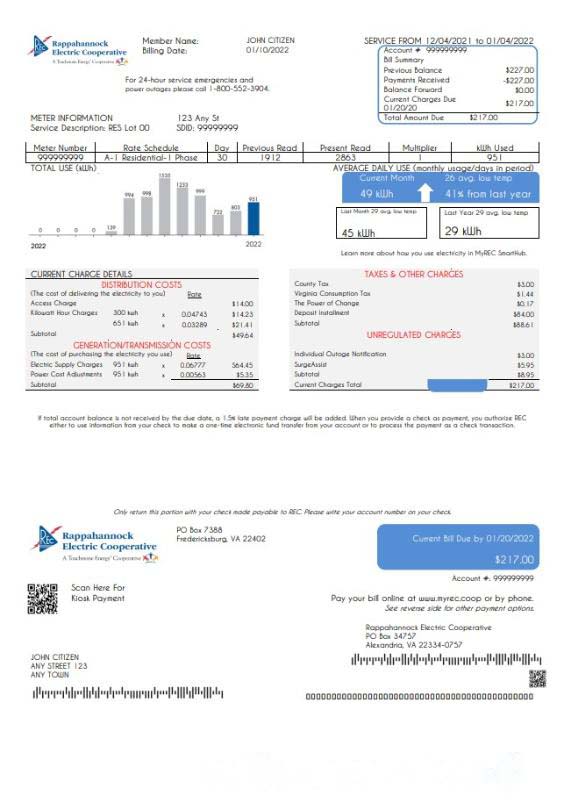 USA Rappahannock Electric Cooperative utility bill template in Word and PDF format download template file