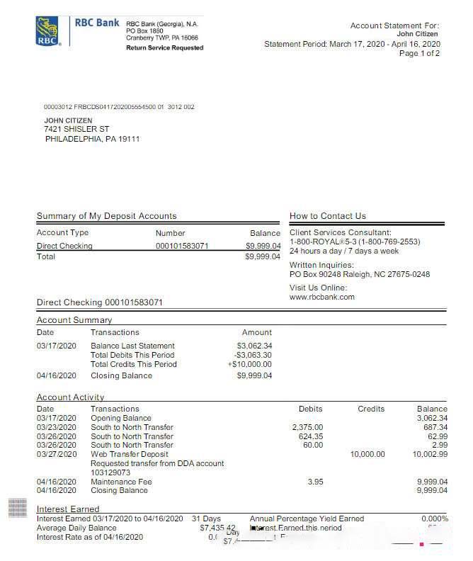 USA RBC bank statement Word and PDF template, version 2 scr download template file