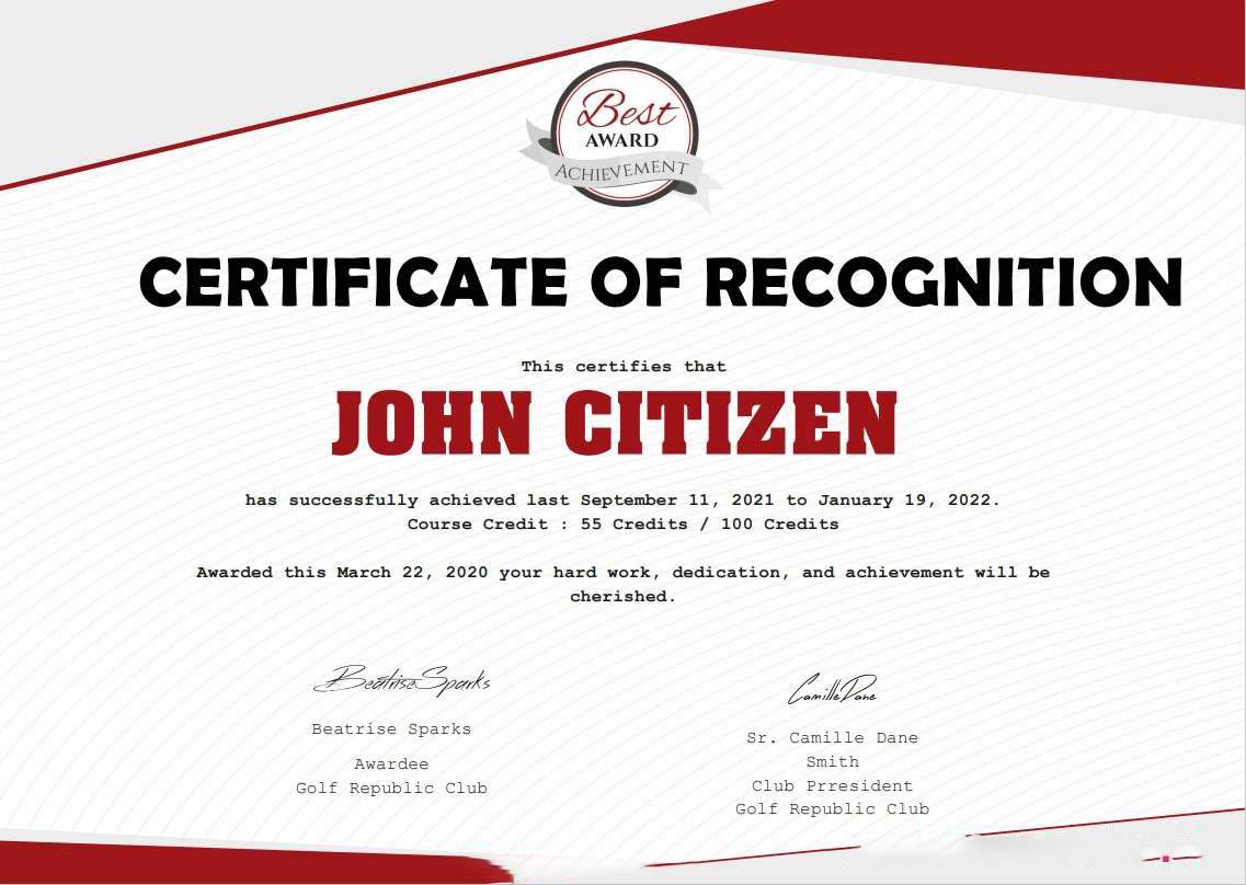 USA Recognition Cert Version 2 download template file