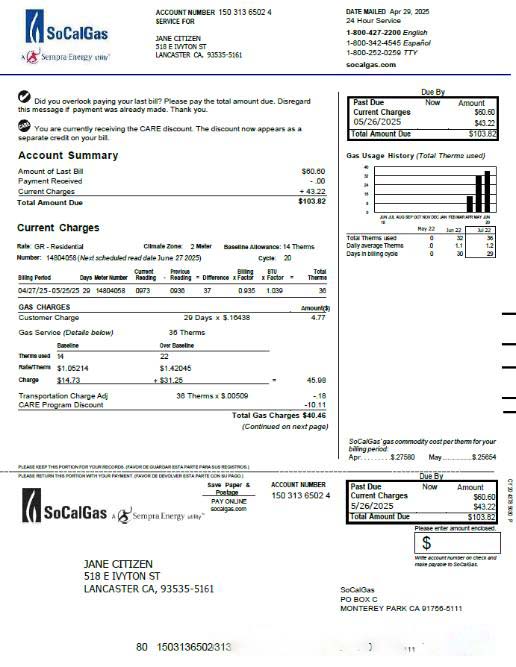 USA So Cal Gas utility bill template in Word and PDF formats, version 3 download template file