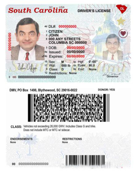 USA South Carolina state Driving License template in PSD format (2020 ?C present) download template file