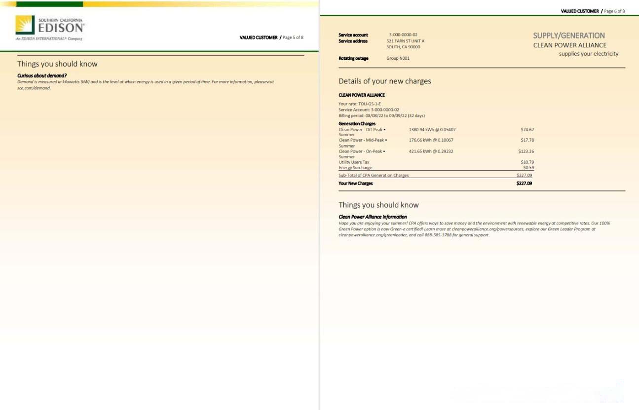 USA Southern California EDISON utility bill, Word and PDF template, 8 pages 5 6 download template file