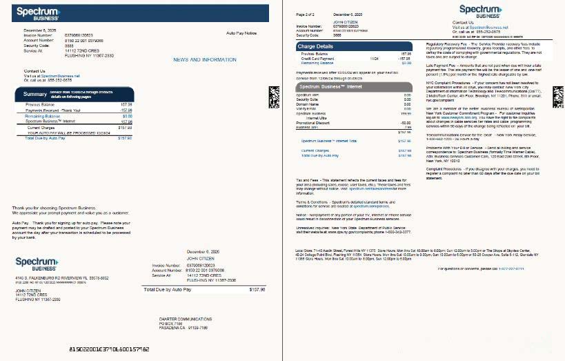 USA Spectrum Business utility bill template in Word and PDF formats, 2 pages, version 2 download template file