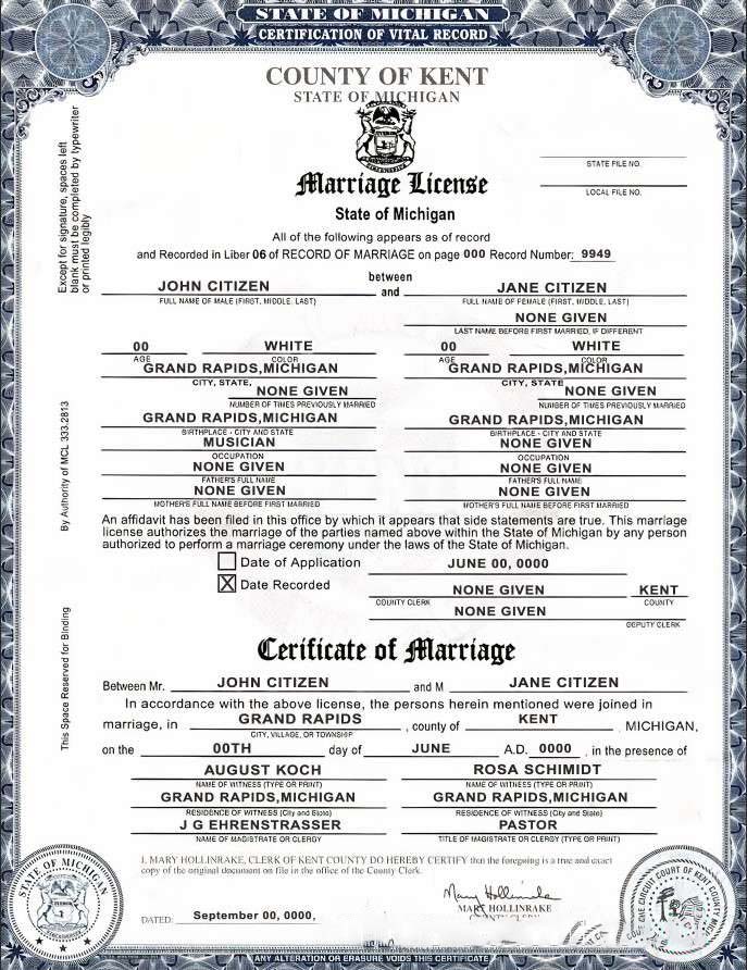 USA state Michigan Kent County marriage certificate template in PSD format, fully editable, version 2 download template file