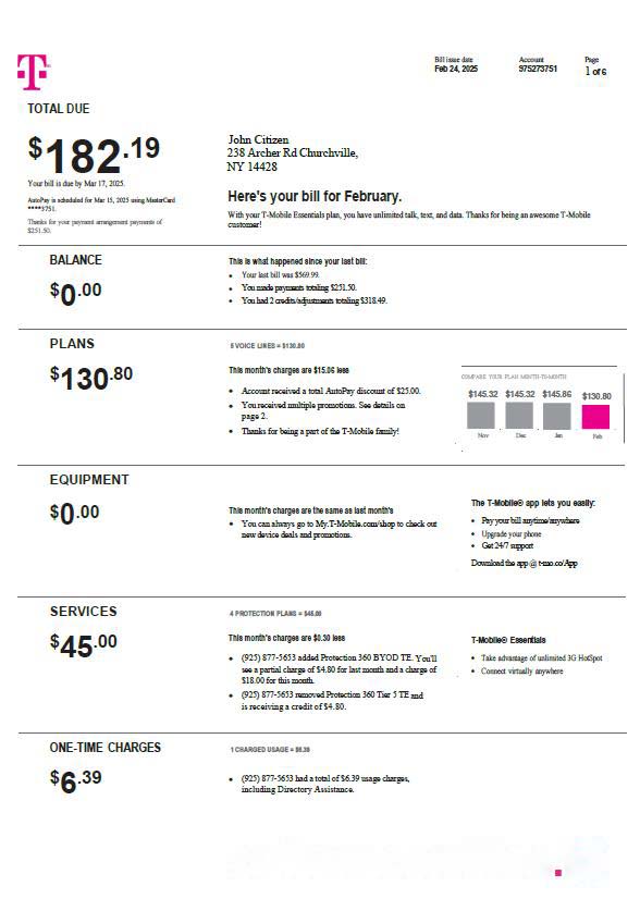 USA T mobile utility bill template in Word and PDF formats, version 4 download template file