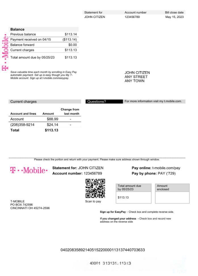USA T Mobile utility bill Word and PDF template (1) download template file