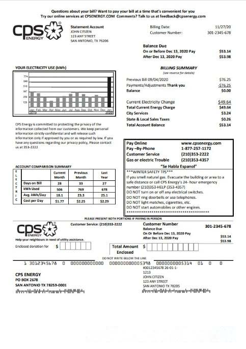 USA Texas CPS utility bill template in Word and PDF format download template file
