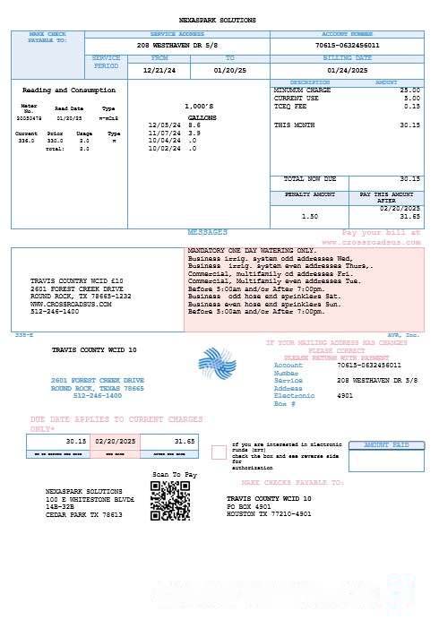 USA Texas Dasor Management and Investment business utility bill template in Word nd PDF formats download template file