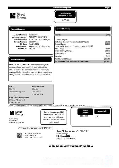 USA Texas Direct Energy business utility bill template in Word and PDF formats download template file