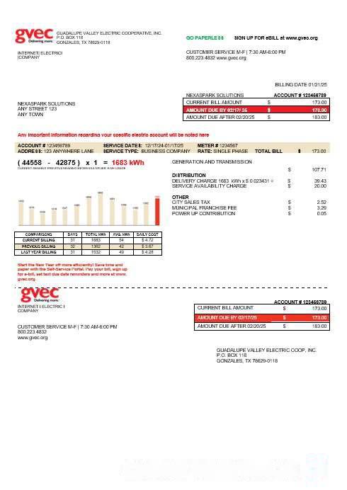USA Texas GVEC business utility bill template in Word and PDF formats download template file