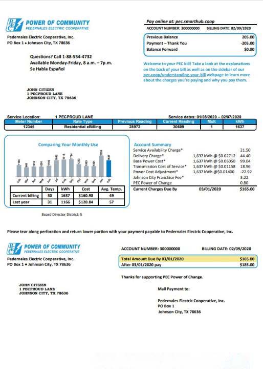 USA Texas Power of Community electricity utility bill in Word and PDF format, good for address prove download template file
