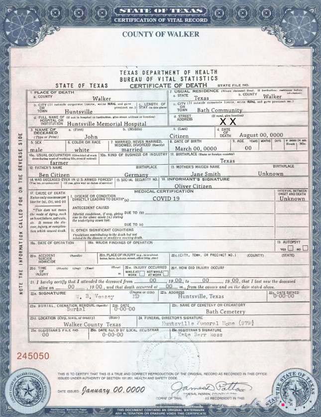 USA Texas state death certificate template in PSD format download template file