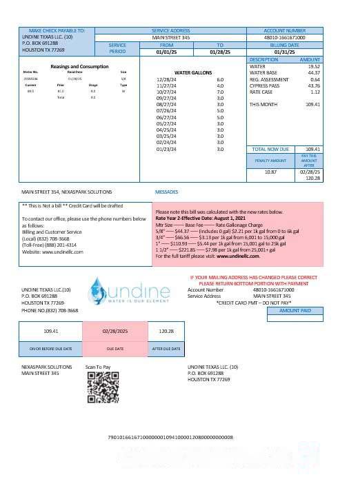 USA Texas Undine water is our element water business utility bill Word and PDF formats download template file