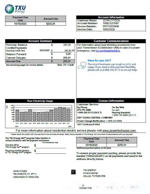 USA TXU Energy utility bill template in Word and PDF formats, version 5 download template file