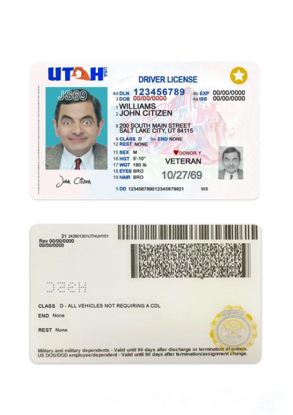 USA Utah Driving License 2021 v1 download template file