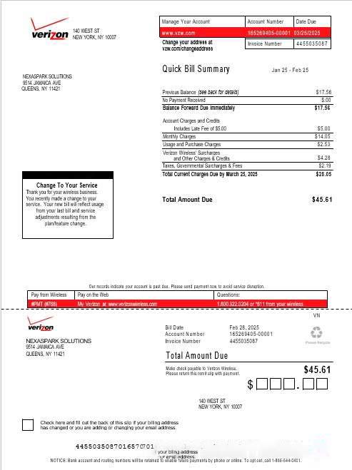 USA Verizon business utility bill Word and PDF template, version 3 download template file