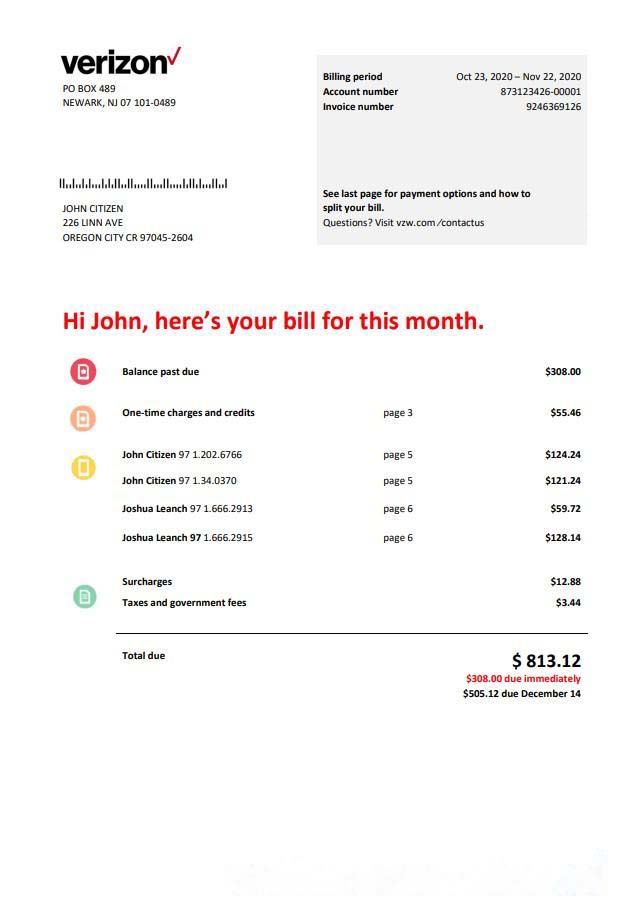 USA Verizon telecommunications utility bill template in Word and PDF format download template file