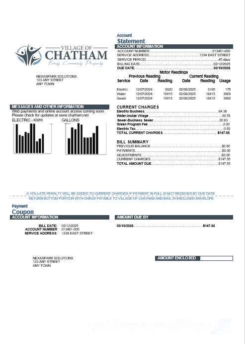 USA Village of Chatham business utility bill template in Word and PDF formats download template file