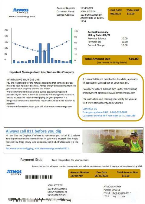 USA Virginia Atmos Energy utility bill template in Word and PDF format (.doc and .pdf) download template file