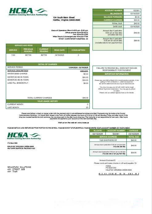 USA Virginia HCSA business utility bill template in Word and PDF formats download template file
