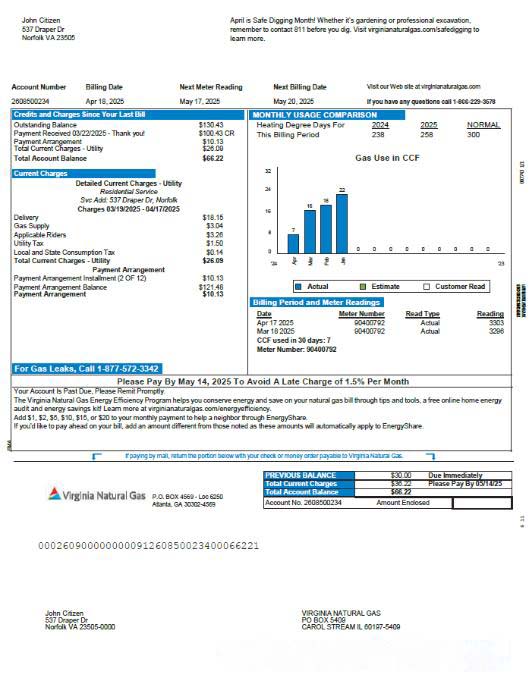 USA Virginia Natural Gas utility bill template in Word and PDF formats download template file