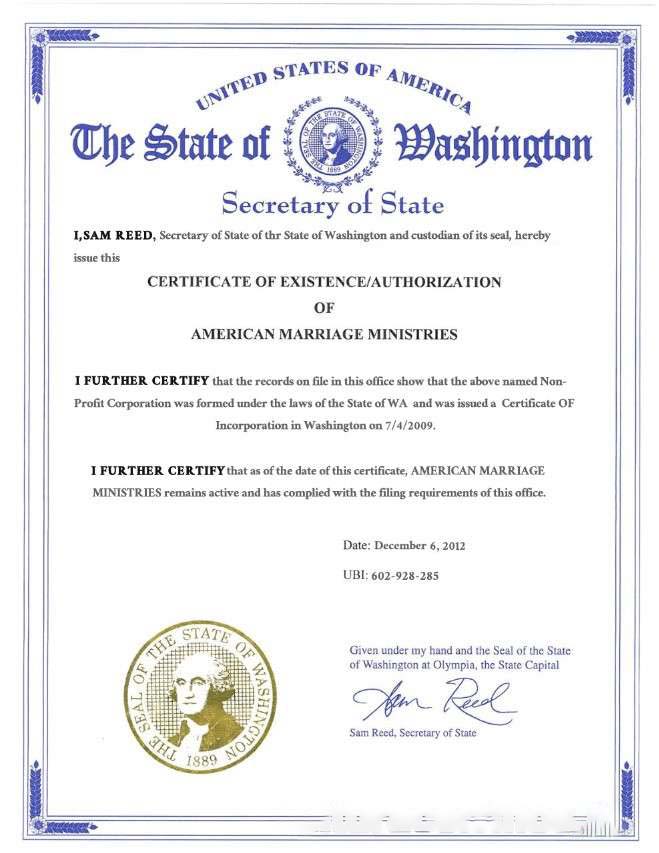 USA Washington state marriage certificate template in PSD format download template file